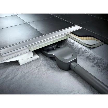Die Duschrinne Alserio 90 cm dient als Ablauf für den befliesten Boden in der Dusche und ermöglicht barrierefreies Duschen. Durch den umlaufenden Fliesenflansch ist ein bündiges Fliesen möglich. Die Ablaufleistung entspricht 0,7 l pro Sekunde gemäß DIN EN 1253. Der vormontierte Geruchsverschluss schließ unangenheme Gerüche aus dem Ablauf aus. Eine stabile Höhenjustierung ermöglichen die beigefügten Hartschaumkeile. Das Duschrinnen-Designrost gehört nicht zum Lieferumfang und muss separat erworben werden.