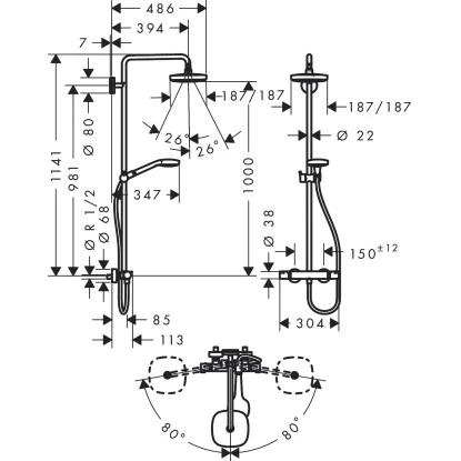 Das Hansgrohe Duschsystem Croma Select E 180 2jet mit Thermostat überzeugt mit seinen 4 einstellbaren Strahlarten. Dank einer Strahlfläche mit 180×180 mm (Kopfbrause) und 110 mm (Handbrause) Durchmesser bietet der Duschkopf eine optimale Wasserverteilung und sorgt somit für herrliche Entspannung beim Duschen.
