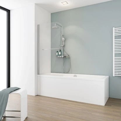 Die Komfort Badewannenaufsätze von Schulte sind passend für handelsübliche Badewannen und können einfach und komfortabel Ihre Badewanne in eine Duschkabine verwandeln. Die rahmenlose 1-teilige Badewannenaufsatz von Schulte überzeugt durch ihr modernes Design. Sie besteht aus stabilem 5 mm starkem Echtglas. Das Element ist beidseitig schwenkbar und dadurch besonders platzsparend. Die Montage der Badewannenaufsatz ist rechts- oder linksseitig möglich. der praktische Handtuchhalter ist im Lieferumfang enthalten.