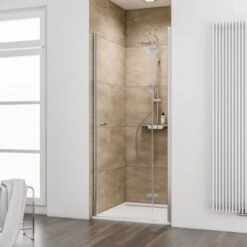 Der durchgehende Magnetverschluss der Duschkabine garantiert ein perfektes Abdichten der Tür. Der Anschlag der Tür ist von außen gesehen rechts. Der verdeckte Heb-Senk-Mechanismus der nach außen öffnenden Tür garantiert eine erhöhte Dichtigkeit und ein zuverlässiges Schließverhalten. Durch die vormontierten innen bündigen Halbkreis-Scharniere ist eine einfache Pflege und eine einfache Montage der Dusche gegeben. Diese liegen mit der Glasfläche bündig auf. Dadurch können Wassertropfen einfach entfernt werden.
